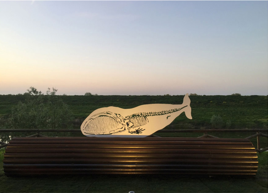 Nicola Salvatore immagina invece un grande cetaceo che risale il Po dalle foci e si arena sulle sabbie di Arena su un fascio di trochi o di pali, proprio dove un tempo venivano prodotti i pali per i vigneti, in via della Palaria.