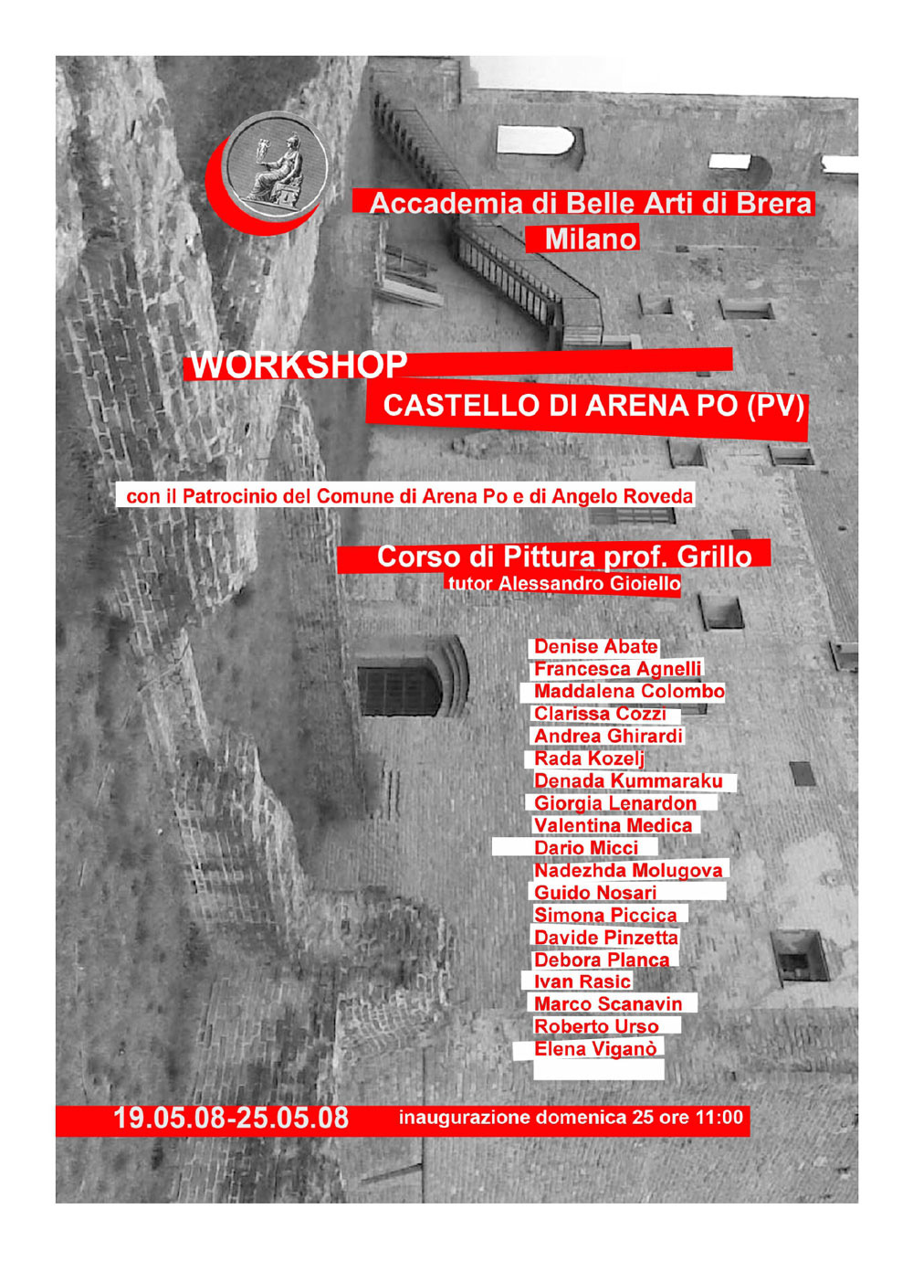 Sbarcano ad Arena Po tre grandi pulmann carichi di giovani e di opere, gli studenti occupano il Palazzo e allestiscono una mostra strepitosa. All’inaugurazione giungono tanti visitatori, parenti e amici dei 104 giovani artisti di Brera; il paese di popola di gente e c’è in giro un’atmosfera davvero stimolante. Arena Po ormai è conosciuta da tanti e nessuno mi fa più la domanda: “Arena Po? ma dove si trova?