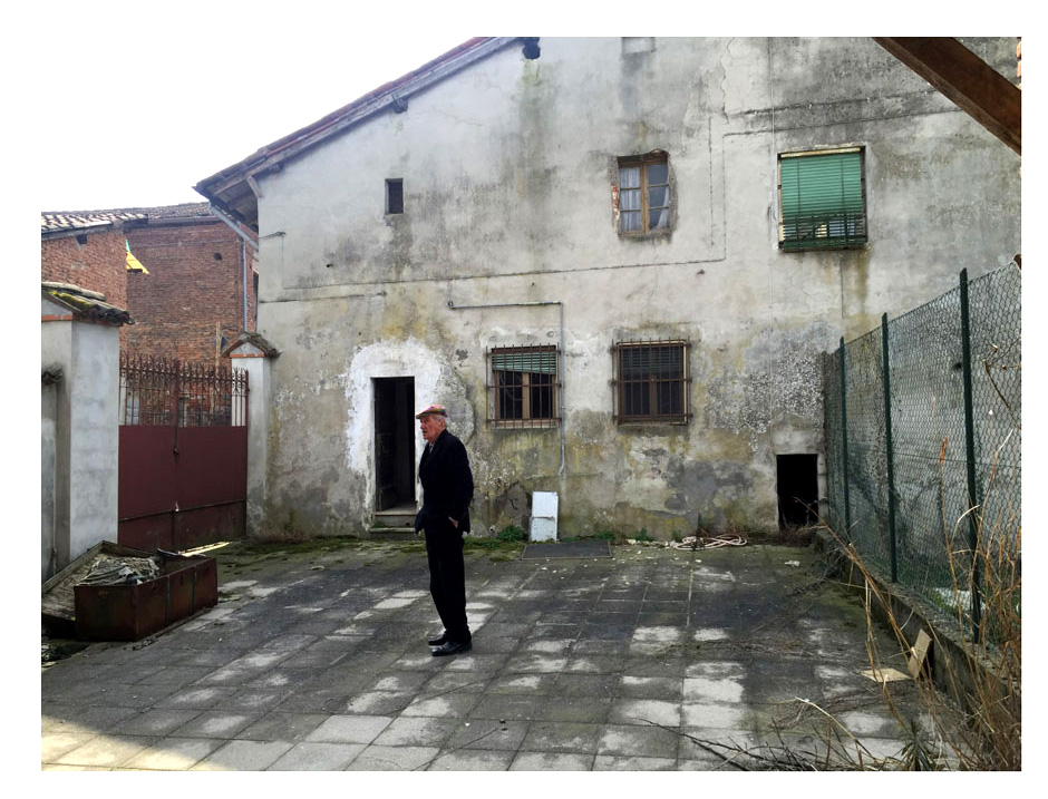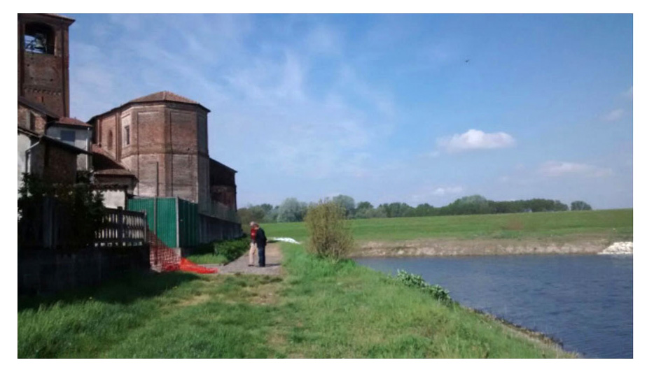 Facendo un giro sul nuovo argine con l’amico Angelo Roveda che frequento dal 1984. Angelo mi chiede di fare qualcosa per Arena Po, una mostra di miei allievi di Brera, come avevo già fatto alla Torre qualche anno prima.