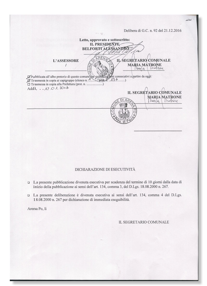 Ma per continuare abbiamo bisogno dell'aiuto di tutti coloro che credono in questo progetto. convinti che stiamo lavorando per creare ad Arena Po qualcosa che la renda speciale, qualcosa che la renda unica, qualcosa che la faccia sviluppare come un'eccellenza del territorio nazionale.