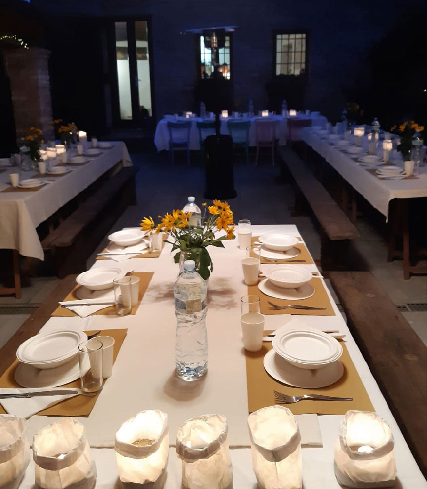 Cene fino a 60 invitati che cenano conoscendo di volta in volta l’opera e il pensiero dell’autore invitato.