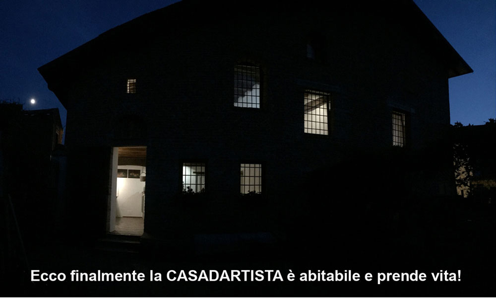Il cantiere della casa richiede molto più tempo e l’Associazione CASADARTISTA non ha una sede, pertanto aspettiamo a registrarla ufficialmente ma questo non costituisce un limite all’attività che si esprime in maniera dirompente con l’organizzazione della grande mostra “La Carica dei 104” al Palazzo.
