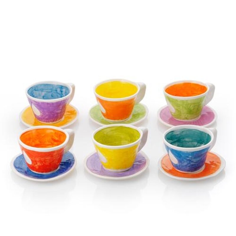 Kit 6 tazze da latte/té + piattini colori assortiti