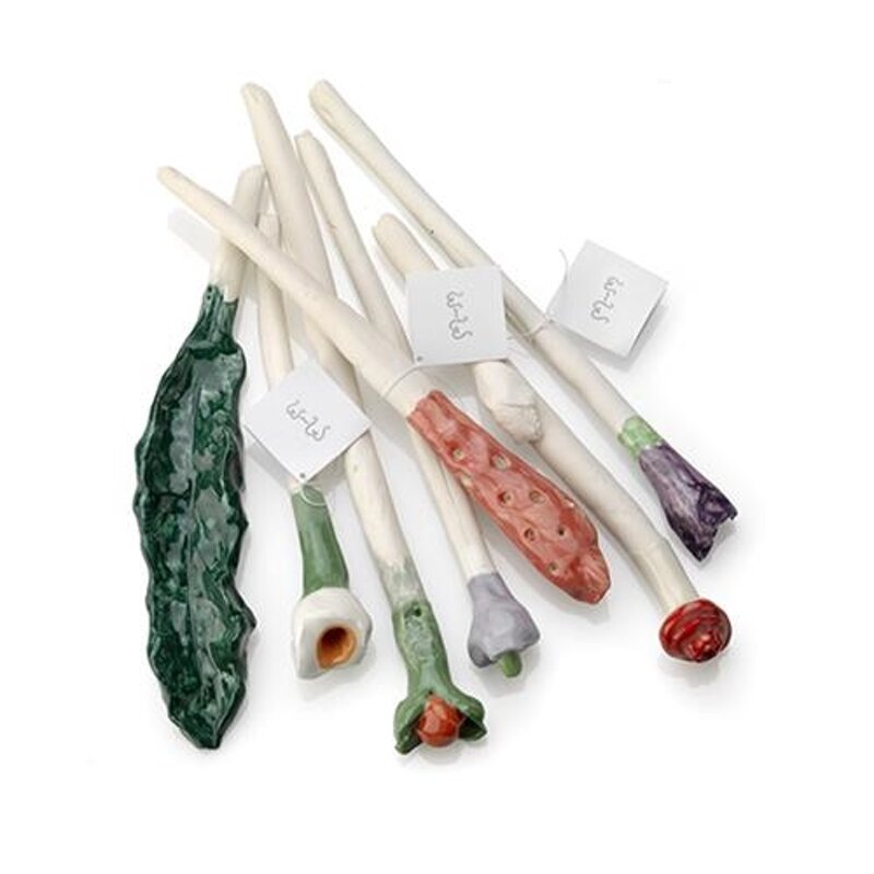 Mazzo di 6 fiori e 1 foglia, smaltati a colore. Pezzi unici